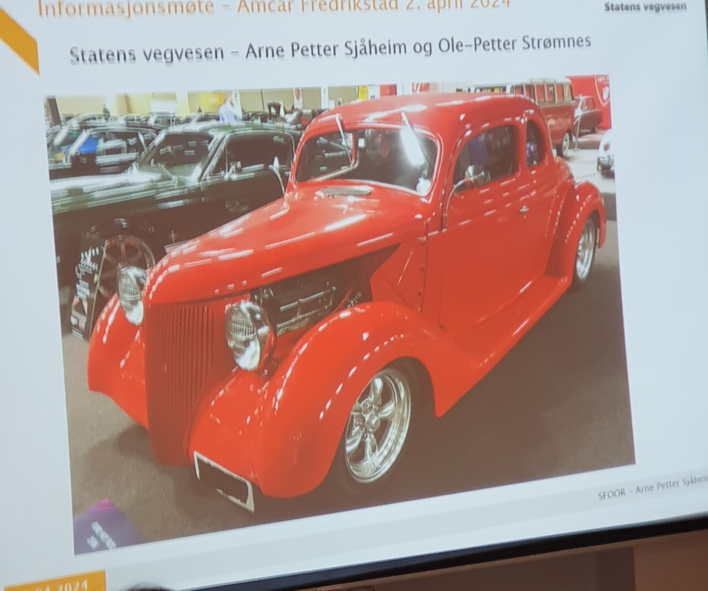 Besøk av Statens vegvesen Medlemsmøte Besøk av Statens Vegvesen (SFOOR gruppa) Tema; Godkjenning av amatør bygde og ombygde kjøretøy.Møte var åpent for alle, ca 40 tilstede